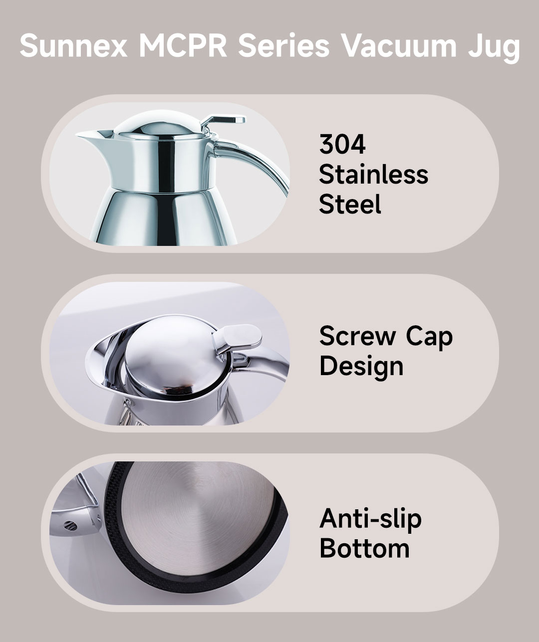 أباريق تفريغ من الفولاذ المقاوم للصدأ من سلسلة MCPR 304 من Sunnex - أداء احترافي للاحتياجات التجارية والمحلية