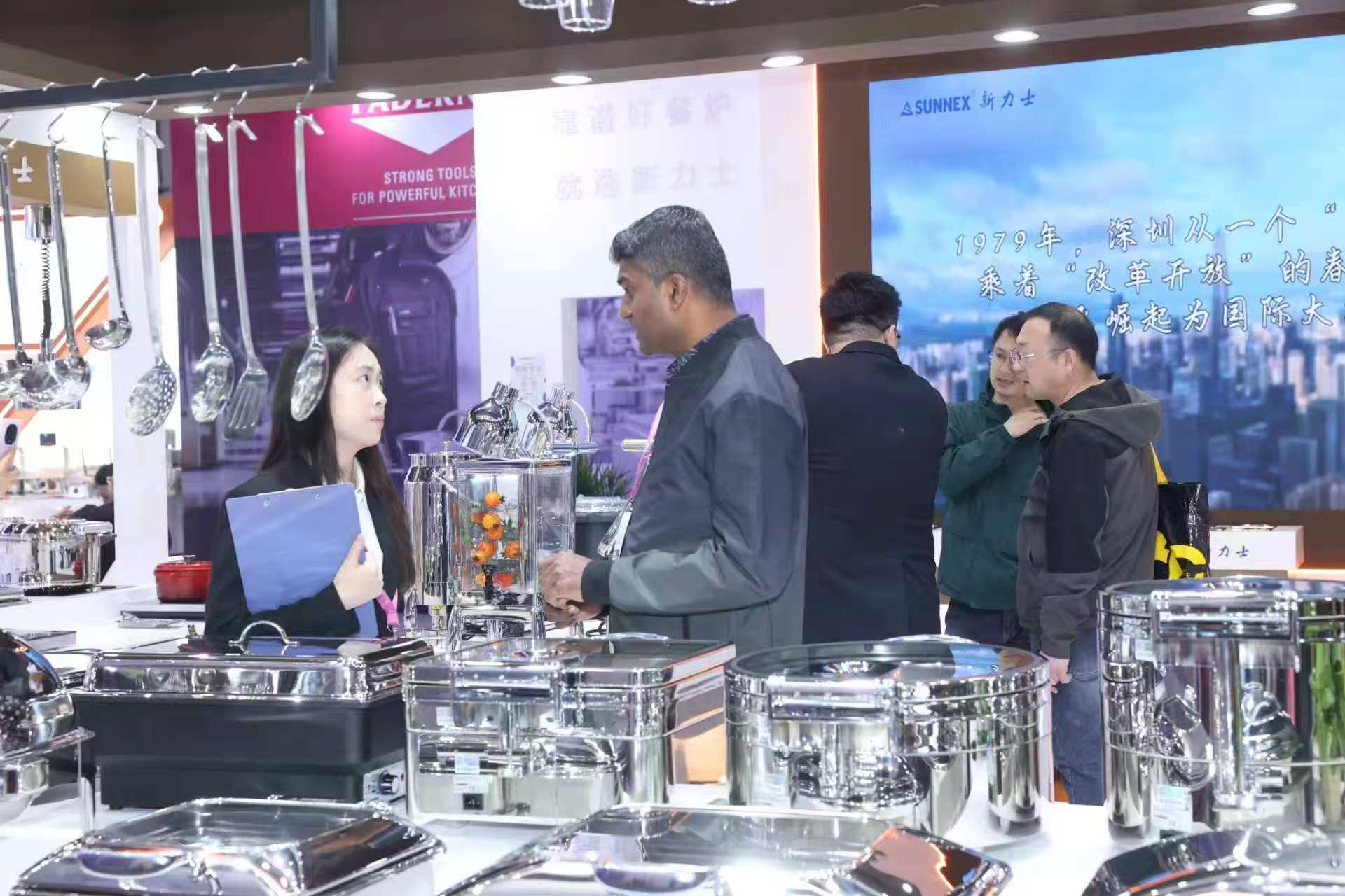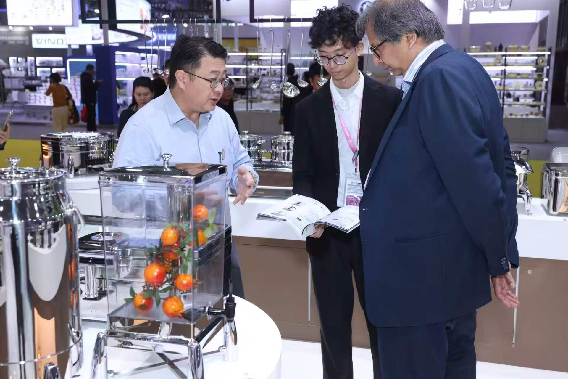 خلال المعرض، ركزت العلامة التجارية على عرض الكتب الأكثر مبيعًا بما في ذلك أطباق الطهي الجافة بدون ماء، وأواني الطهي الكلاسيكية المصنوعة من الفولاذ المقاوم للصدأ، وجرار الحليب من سلسلة فيرونا، وموزعات المشروبات بأنابيب الثلج وغيرها من المنتجات الجديدة، لتلبية الاحتياجات المتنوعة للفنادق الراقية وسلاسل المطاعم التجارية ومقاصف الموظفين. تلقى جناحنا زيارات مستمرة من المشترين المحترفين في الخارج عبر الشرق الأوسط وأفريقيا وأوروبا وأمريكا وجنوب شرق آسيا. قدم فريقنا المحترف مقدمات فردية عن المنتج ودعم الحلول المخصصة لمناقشات التعاون المتعمقة.